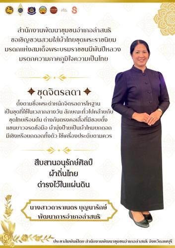 ขอเชิญชวนข้าราชการ ภาครัฐ ภาคเอกชน และพี่น้องประชาชนทั่วไป ร่วมแต่งกายด้วยชุดไทยพระราชนิยม เพื่อสืบสานมรดกแห่งความภูมิใจในความเป็นไทย